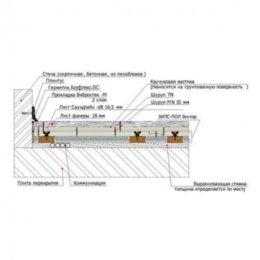 При устройстве конструкции звукоизоляционного пола применяются следующие материалы: