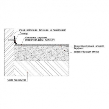Звукоизоляция под финишное напольное покрытие с применением Акуфлекс