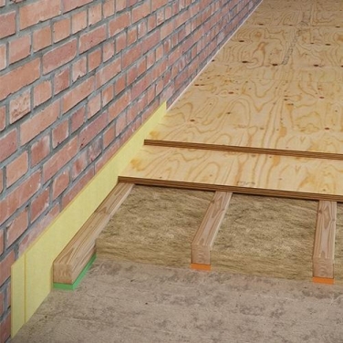 Звукоизоляционный пол по лагам с применением Sylomer (шаг 300 мм)