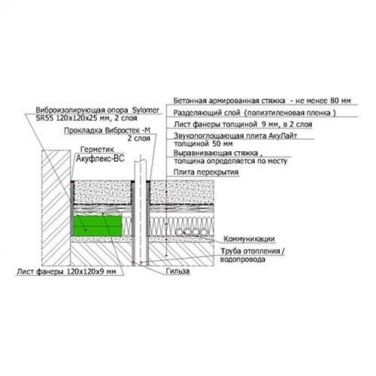 Звукоизоляционный пол с применением Sylomer и АкуЛайт