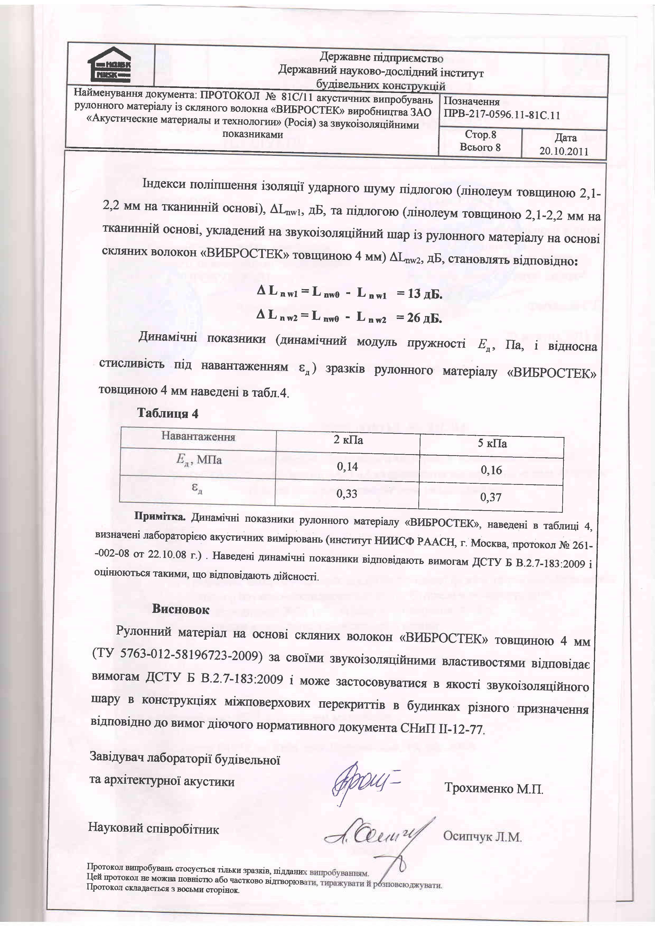 Динамический модуль упругости Ед: 0,18 МПа при нагрузке 2 кПа, 0,35 МПа при нагрузке 5 кПа.
