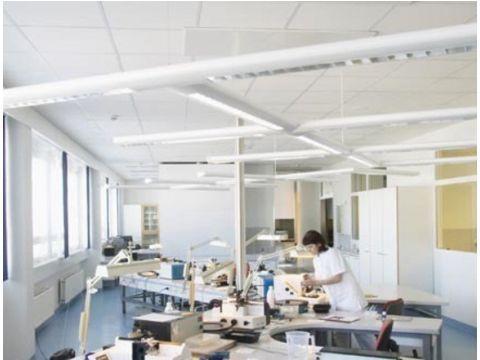 Подвесной потолок используется для звукоизоляции соседних помещений в том случае, если перегородки не доходят до перекрытия. Подходит также для улучшения звукоизоляции от вертикального шума, производимого вентиляционным оборудованием, шагами людей и т.д. Ecophon Combison Uno A имеет открытую подвесную систему. Панели демонтируются.