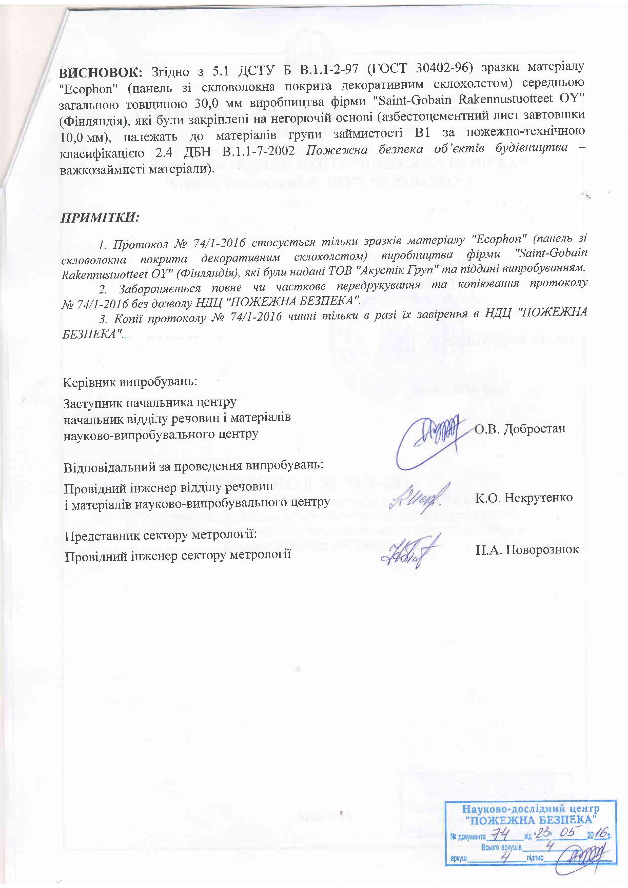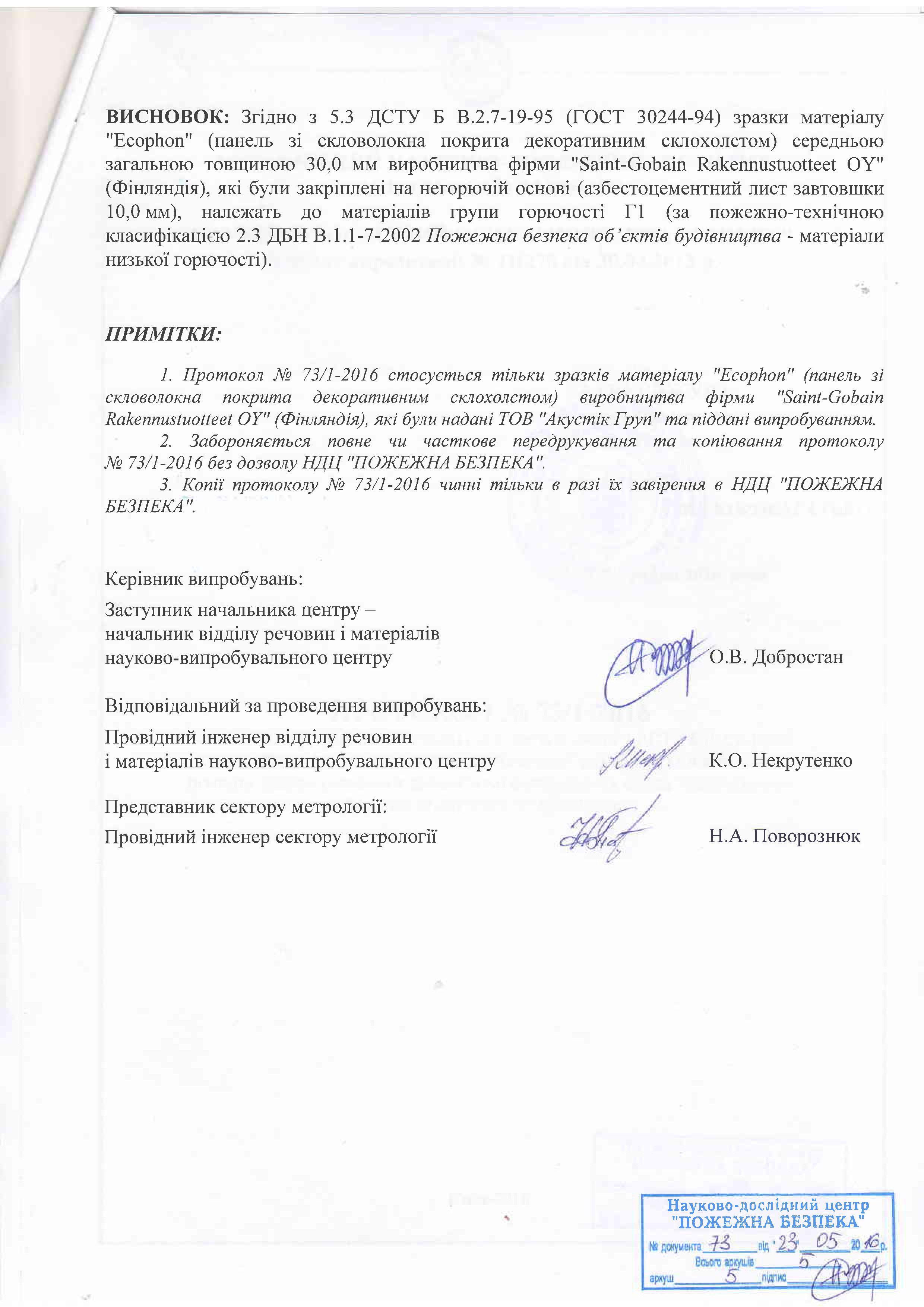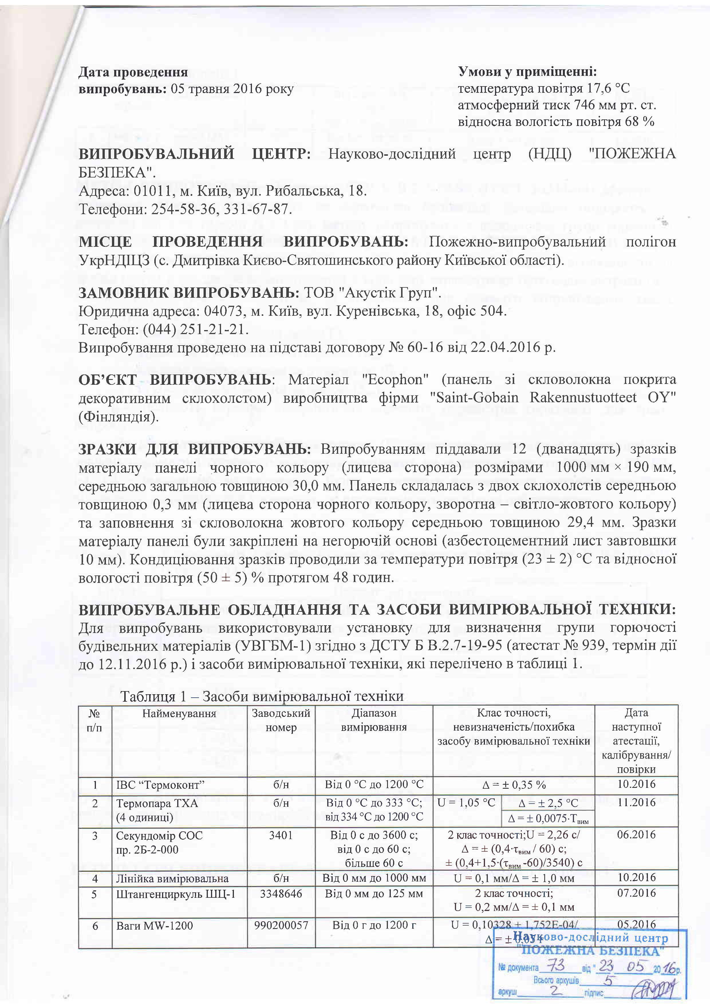 Результаты тестов в соответствии с EN ISO 354. Классификация в соответствии со стандартом EN ISO 11654, единичные значения для NRC и SAA в соответствии с ASTM C 423.