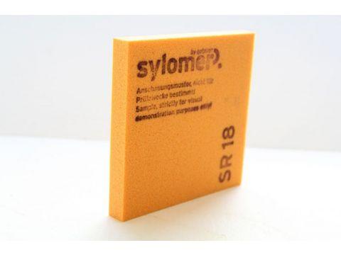 Sylomer SR 18– уникальный материал производства австрийской компании Getzner, применяемый для виброизоляции инженерного оборудования, фундаментов зданий, рельсовых путей и пр. Материал выпускается в рулонах или в штучных опорах заданных размеров (по индивидуальному заказу). В качестве упругого слоя между источником вибрации и защищаемой поверхностью (конструкцией) Sylomer может применяться по всей плоскости опирания, либо фрагментами (под опорными узлами). Sylomer SR 18 выдерживает статическую нагрузку 0,018 Н/мм2 и используется для виброизоляции оборудования и конструкций с небольшим весом.