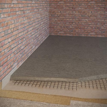 Конструкція складається з шару армованої цементно-піщаної стяжки товщиною не менше 60 мм, яку поклали на звукоізоляційний матеріал Акуфлекс.