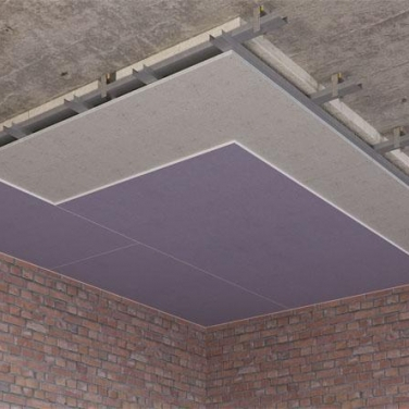 Конструкція складається з металевого дворівневого каркасу, віброізолюючих підвісів VibroElastic, звукопоглинаючої плити Шуманет-Еко, акустичного триплексу Саундлайн-dB та обшивних листів NIDA CICHA. Каркас закріплюється до перекриття за допомогою віброізолюючих підвісів VibroElastic.