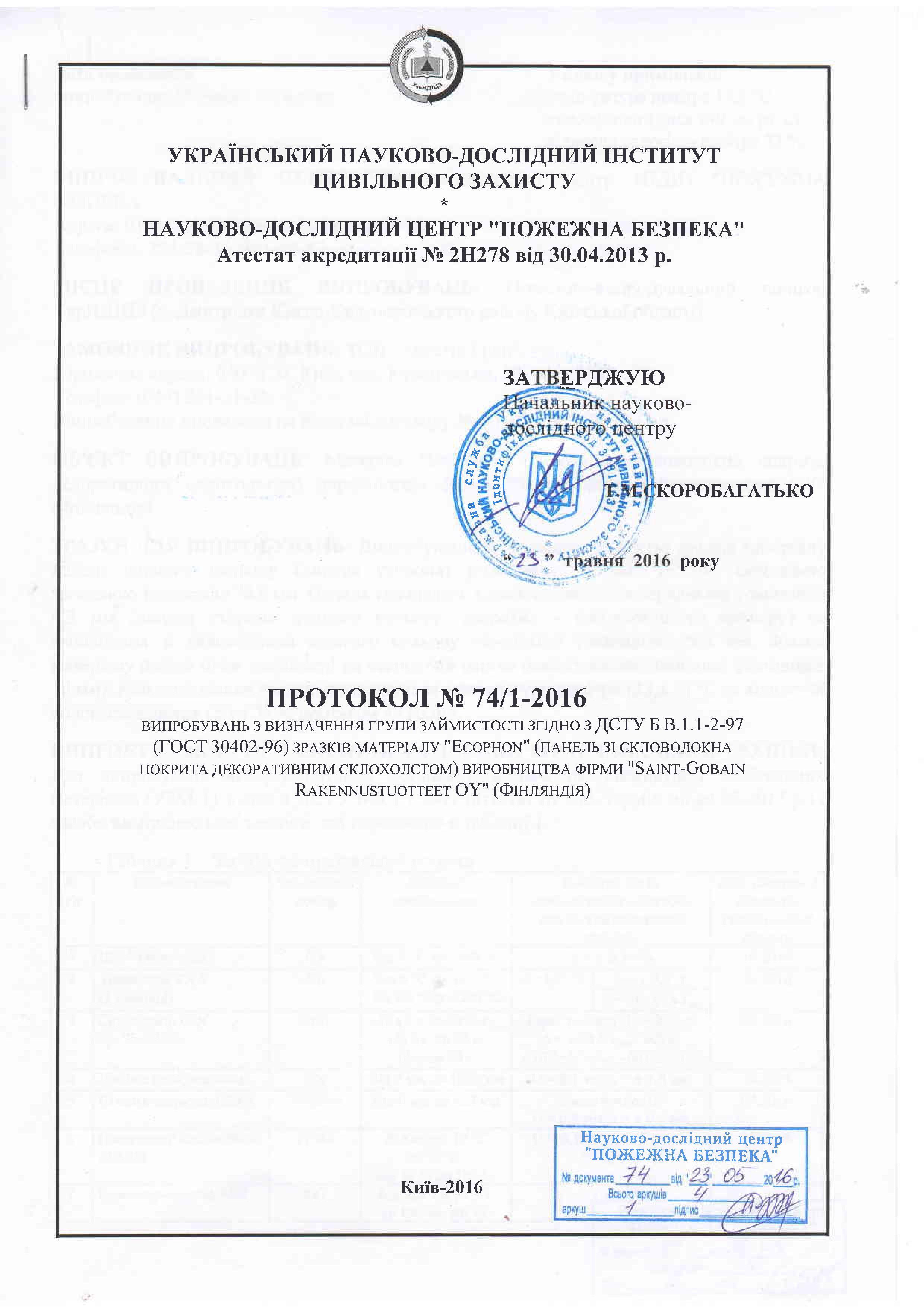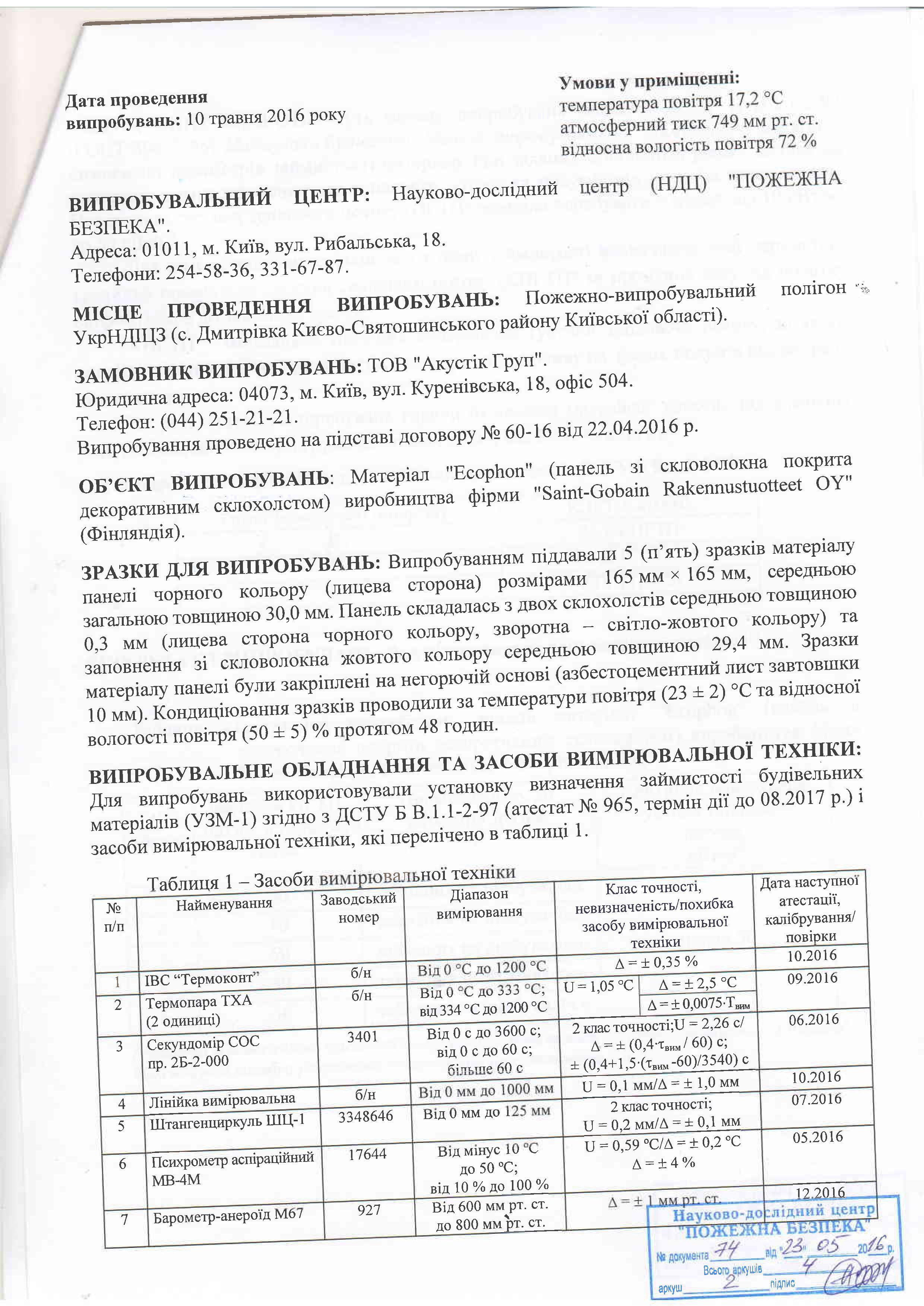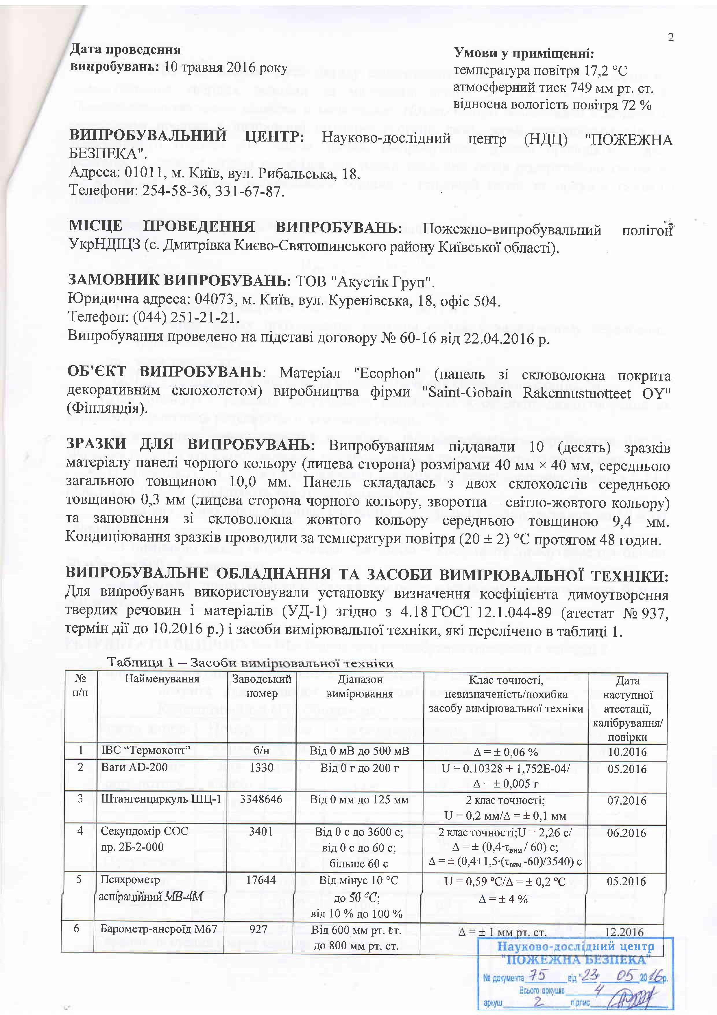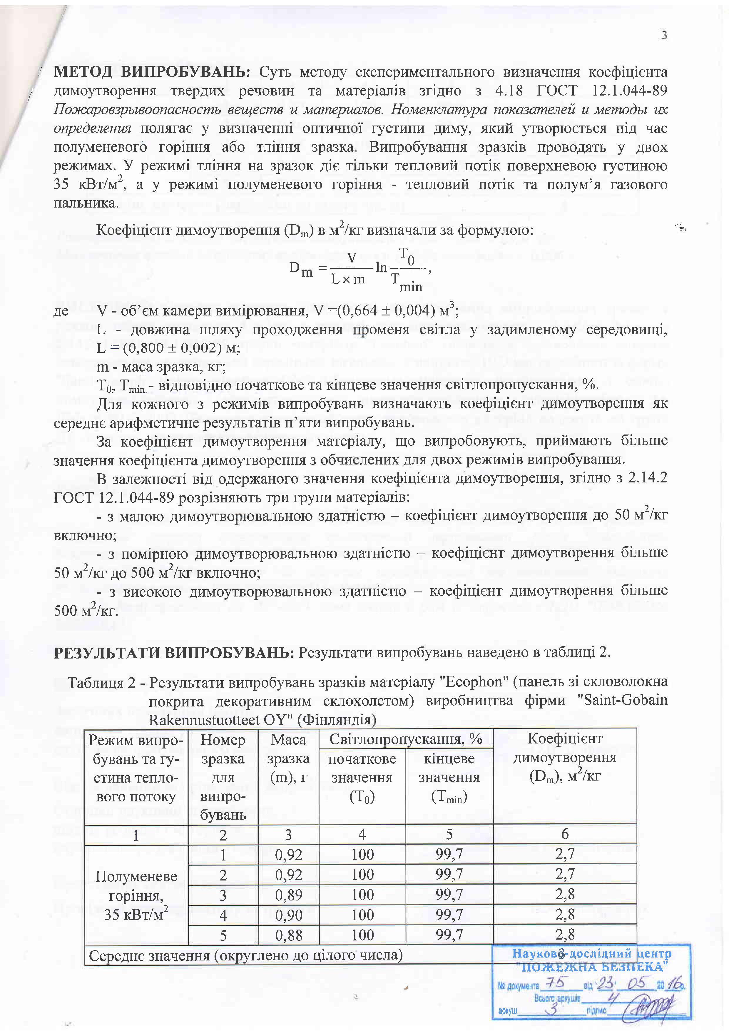 Протокол випробувань на димоутворення